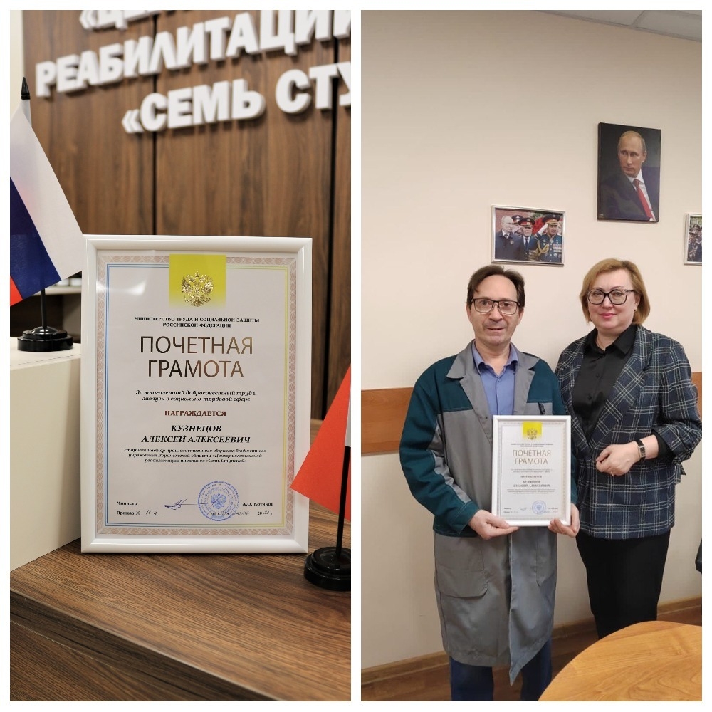 Поздравляем старшего мастера БУ ВО «ЦКРИ «Семь Ступеней» Кузнецова Алексея Алексеевича с получением